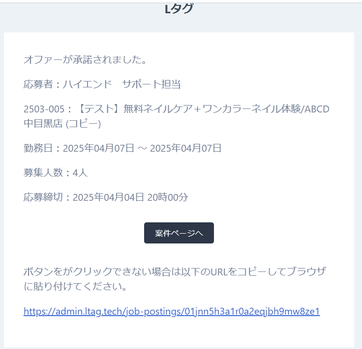 メール内のリンクを開くと対象の案件が開かれる、もしくはログイン後に対象の案件が開かれます。